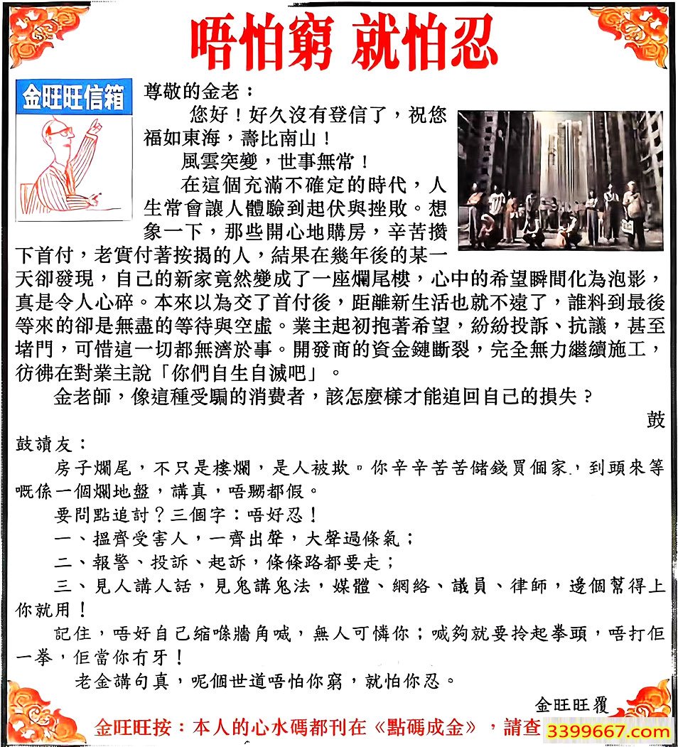 主题 :101期:金旺旺信箱彩民推荐→→《唔怕窮 就怕忍》 |