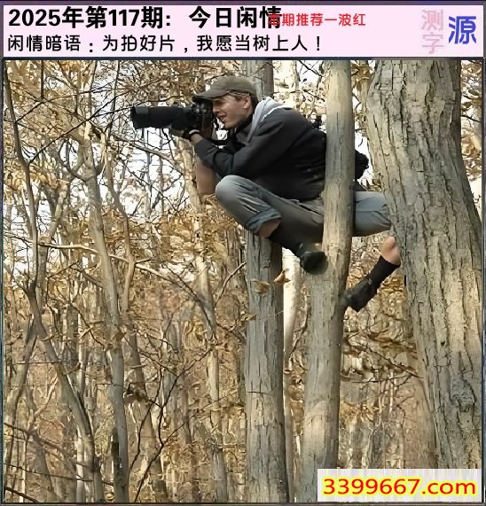 主题 :117期今日闲情②:为拍好片,我愿当树上人!测字:源