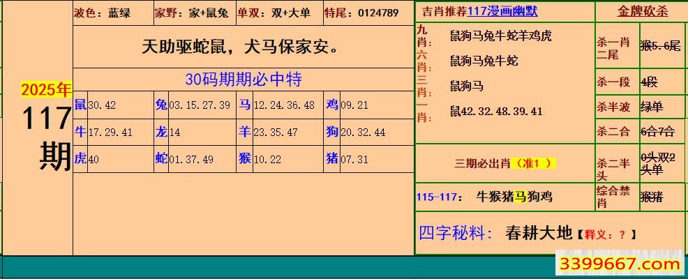 主题 :117期:小鱼儿30码期期中+幽默猜测