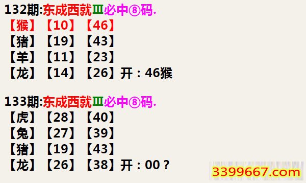 133期:东成西就Ⅲ必中⑧码