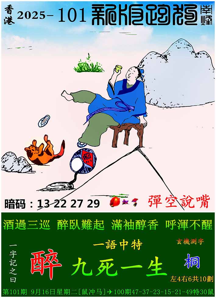主题 :101期:新版跑狗一字記之曰【醉】 玄機測字:【桐】
